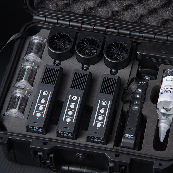 Delivering power comparable to a 1500W fog machine, the Trident Kit can haze up to 186 m² in just one minute.