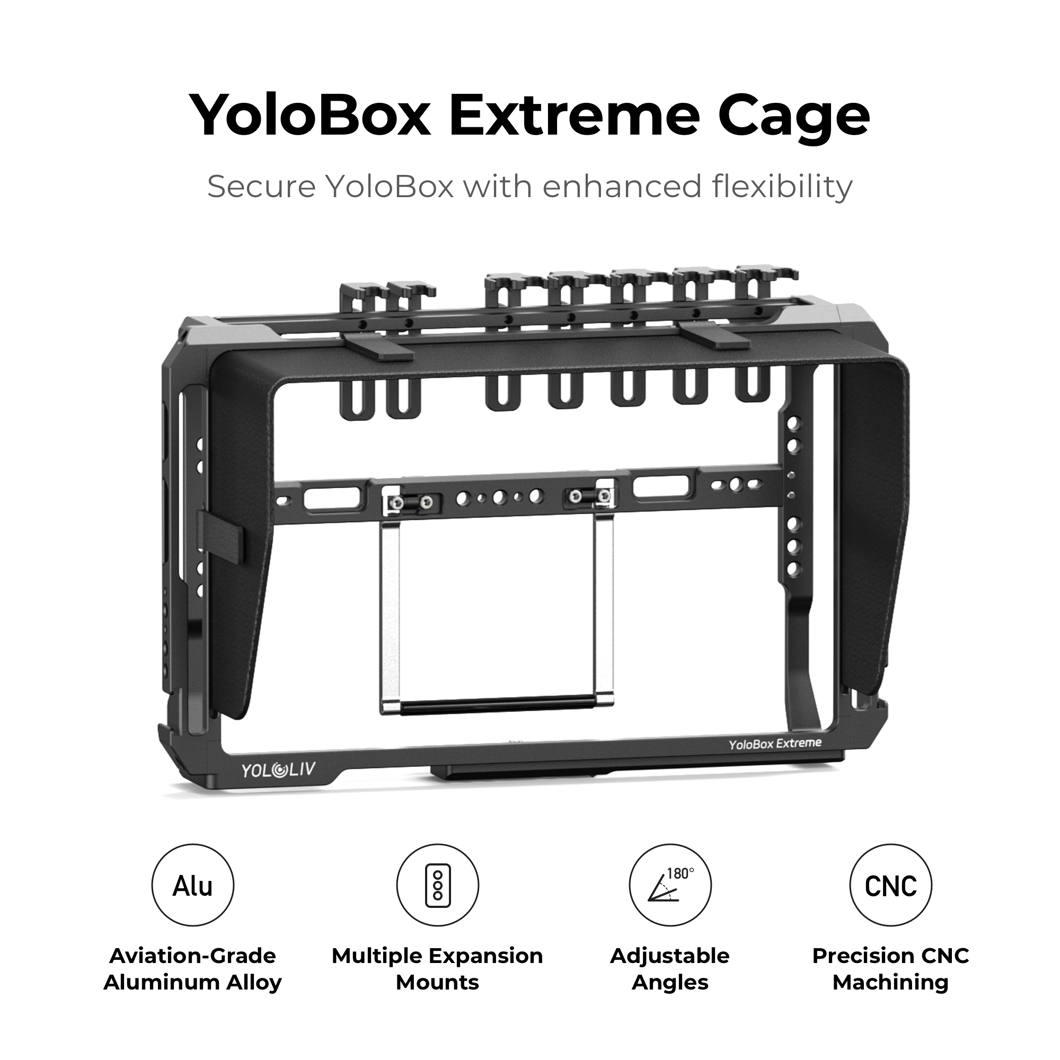 Protect and elevate your Yolobox Extreme with this Yololiv Extreme Cage. It adds protection, expansion ports, table stand and a sunhood.