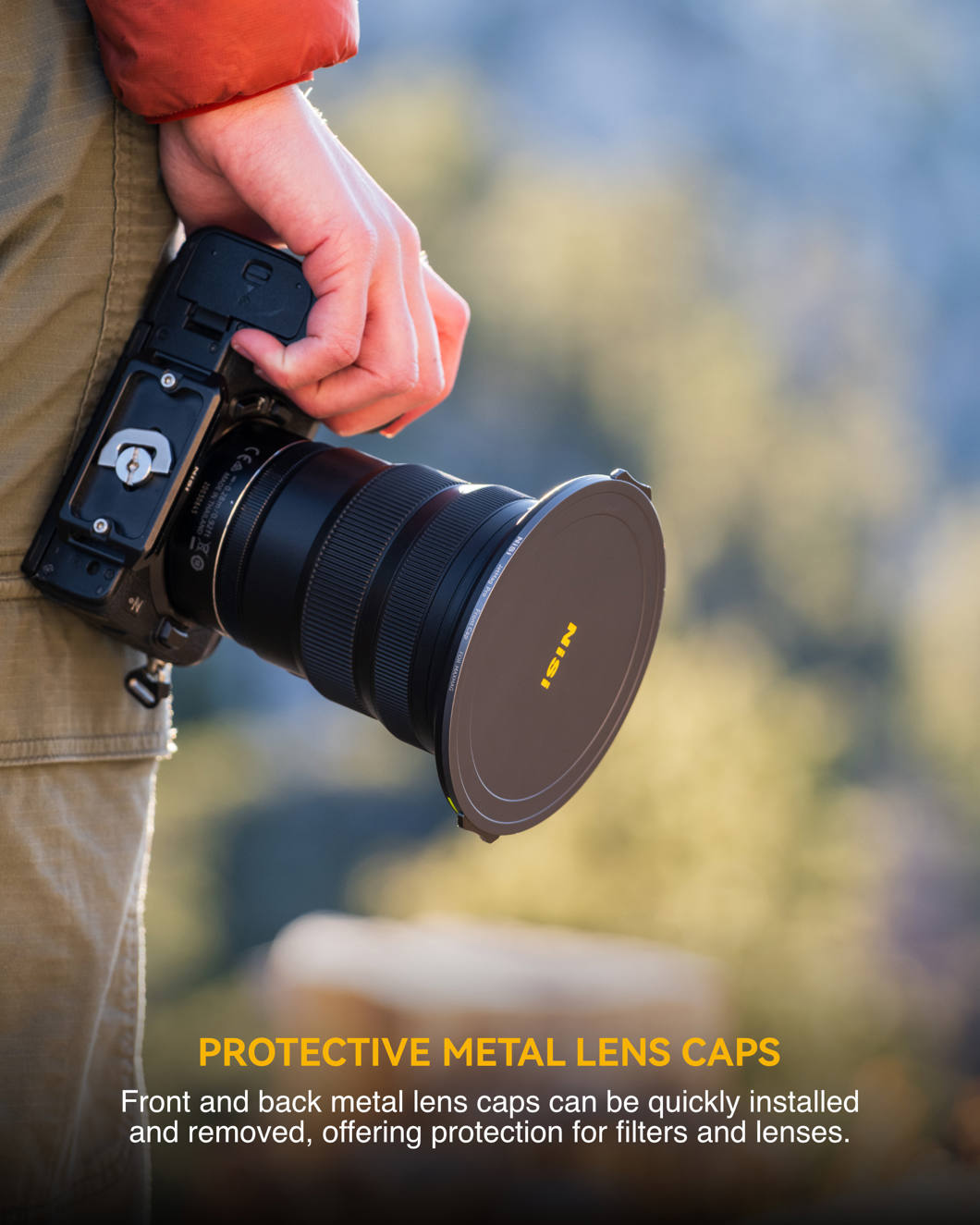 Front and Back metal lens caps can be quickly installed and removed, offering protection for both filters and lenses.